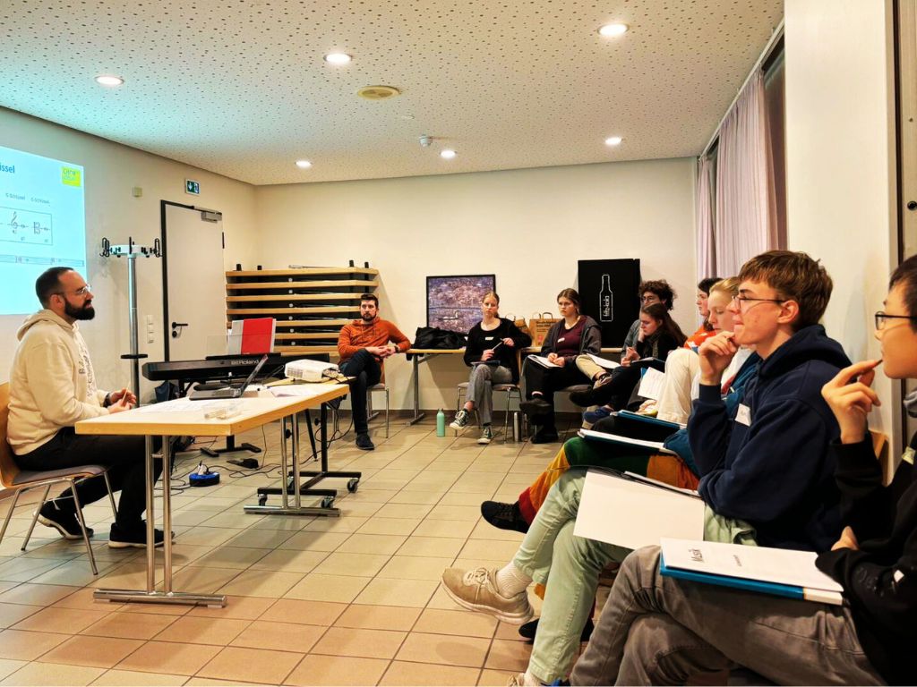 Bei uns lernt ihr durch’s Machen: Relevante Inhalte wie Erlebnispädagogik, Dirigieren, Konfliktlösung, Datenschutz, Kindeswohl, Medienkompetenz, Musiktheorie oder diskriminierungskritische Chorarbeit erarbeitet ihr euch stets interaktiv, an euren Bedürfnissen ausgerichtet und im Miteinander!