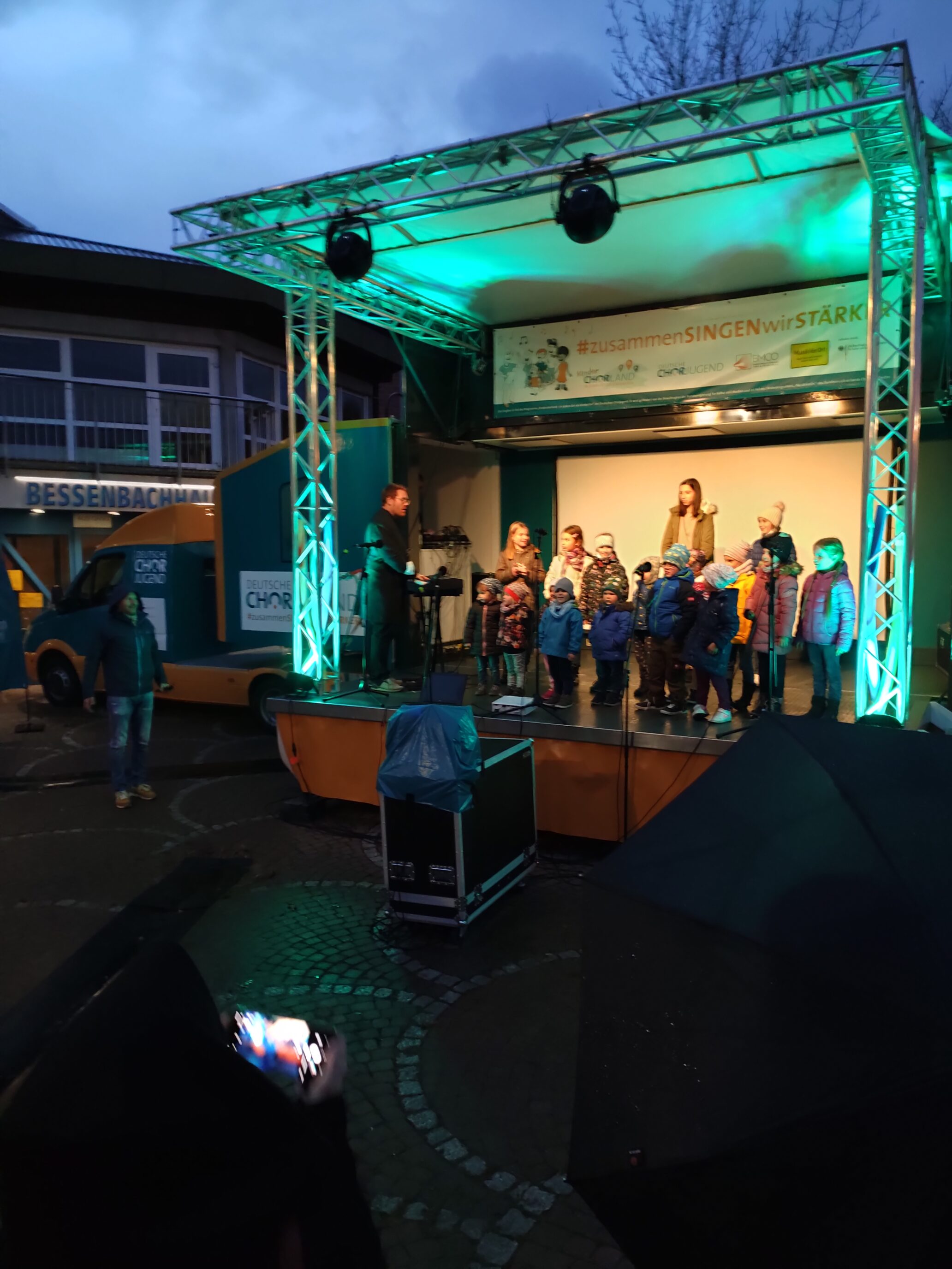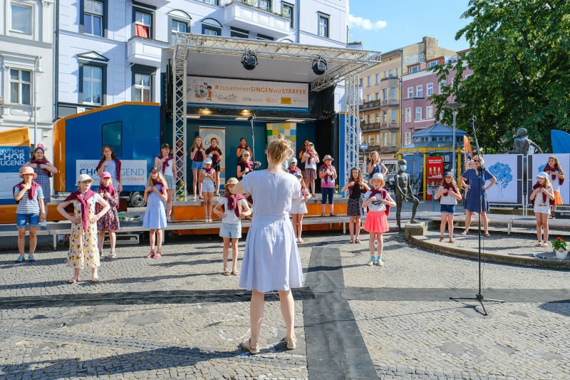 Am Weltkindertag (20.09.2023) fand eine Demonstration gegen die Sparpläne der Regierung und für gute Rahmenbedingungen in der Kinder- und Jugendarbeit statt. Ein Bündnis von Verbänden hatte zu der Demonstration aufgerufen. Die Chorjugend beteiligte sich lautstark – und die Abschlusskundgebung fand auf der Bühne unseres SingBusses statt!