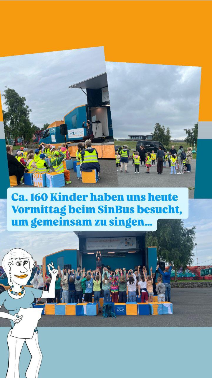 Am 15.07.2025 begann unsere SingBus-Tour durch Schleswig-Holstein mit insgesamt 6 Stationen in Glücksstadt. Gemeinsam mit dem Chorverband Schleswig-Holstein wurde ein bunter SingBus-Tag für junge Menschen veranstaltet. Am Vormittag kamen Schulklassen von 2 Grundschulen und von 3 KiTas aus Glücksstadt und Umgebung um mit Musikpädagogin Meike zu singen.