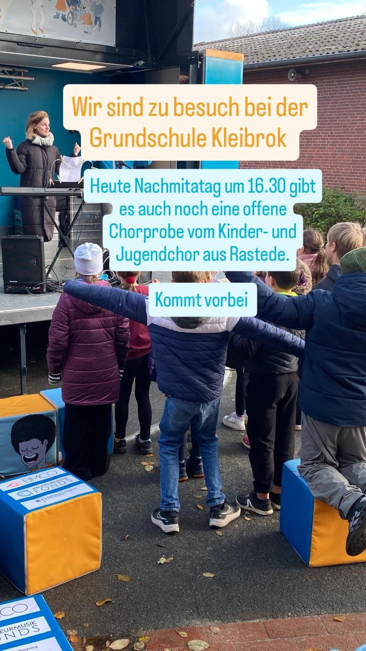 Am 28.10.2025 klappten wir unserer SingBus- Bühne zum letzten mal in der SingBus-Tour 2024/25 unsere Bühne bei der Grundschule Kleibrok und dem Kinder- und Jugendchor St- Ulrichs aus Rastede.
